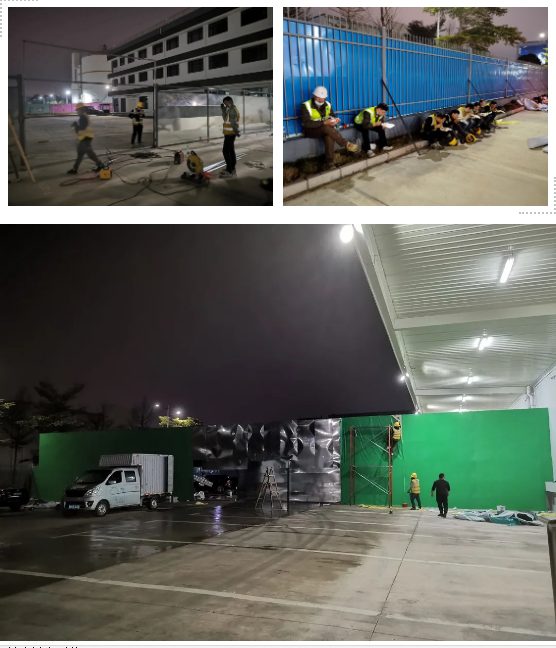 在圓滿完成跨境車輛疫情防控停車場施工任務(wù)后,項目部于2022年2月17日晚8時再次收到光明區(qū)政府緊急指令,需在跨境停車接駁點增加700米長隔離圍擋。收到指令后項目人員隨即進場展開施工,于2月18晚順利完成700米圍擋施工,24小時圓滿完成任務(wù)。