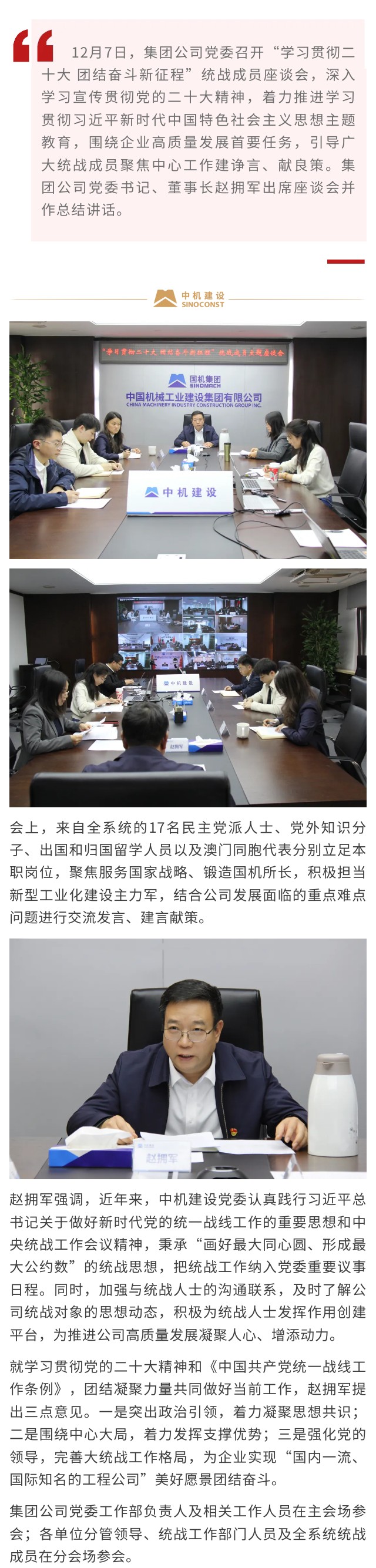 中機(jī)建設(shè)召開(kāi)統(tǒng)戰(zhàn)成員座談會(huì)
