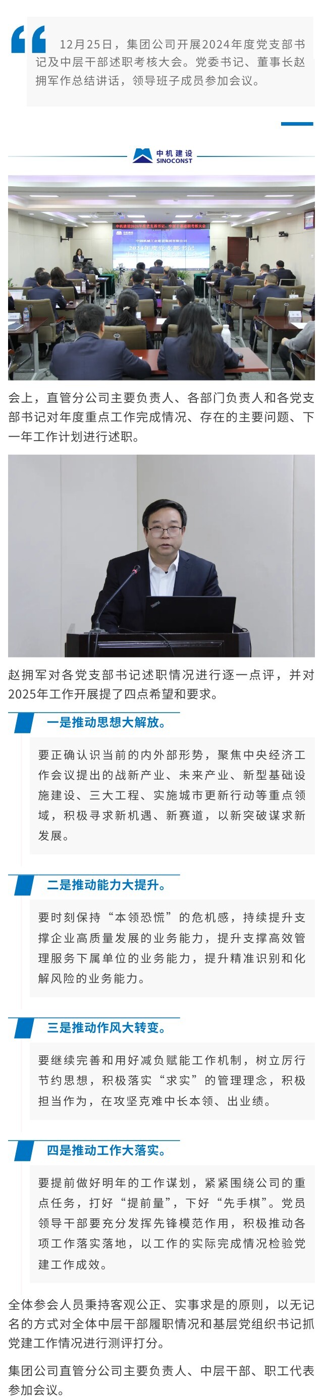 集團(tuán)公司開展2024年度黨支部書記及中層干部述職考核大會(huì)