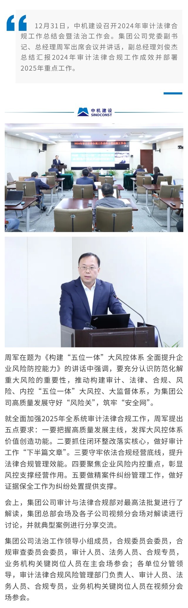 中機(jī)建設(shè)召開(kāi)2024年審計(jì)法律合規(guī)工作總結(jié)會(huì)暨法治工作會(huì)
